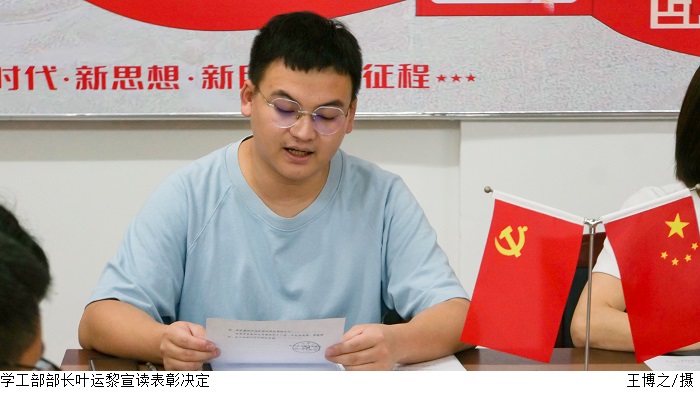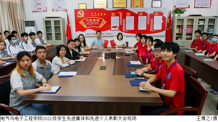 叶运黎宣读了《关于表彰2021-2022学年度2021级员工先进集体和先进个人的决定》,21本科电信1班、21本科电信2班、21本科电气3班获得“优秀班集体”荣誉称号,21本科电气1班谢辉鸿等12名员工干部获得“优秀班干部”荣誉称号,梁春铭等8名助理班主任获得“优秀助理班主任”荣誉称号。