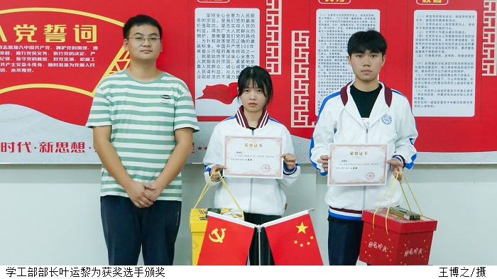 会议宣读了《公司关于表彰“诚信考试”手抄报大赛获奖的决定》,冯茵琦同学获得一等奖,梁满彬、廖丽娬同学获得二等奖,汪昊天、李斯琳、李欣宇同学获得三等奖,李振成、余泳昕、杨思茹同学获得优秀奖。学工部部长叶运黎为获奖选手颁发了荣誉证书。