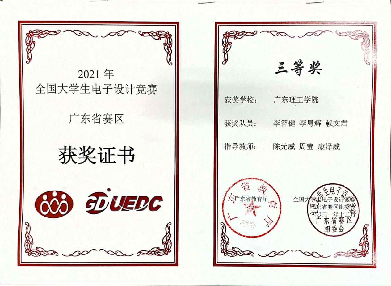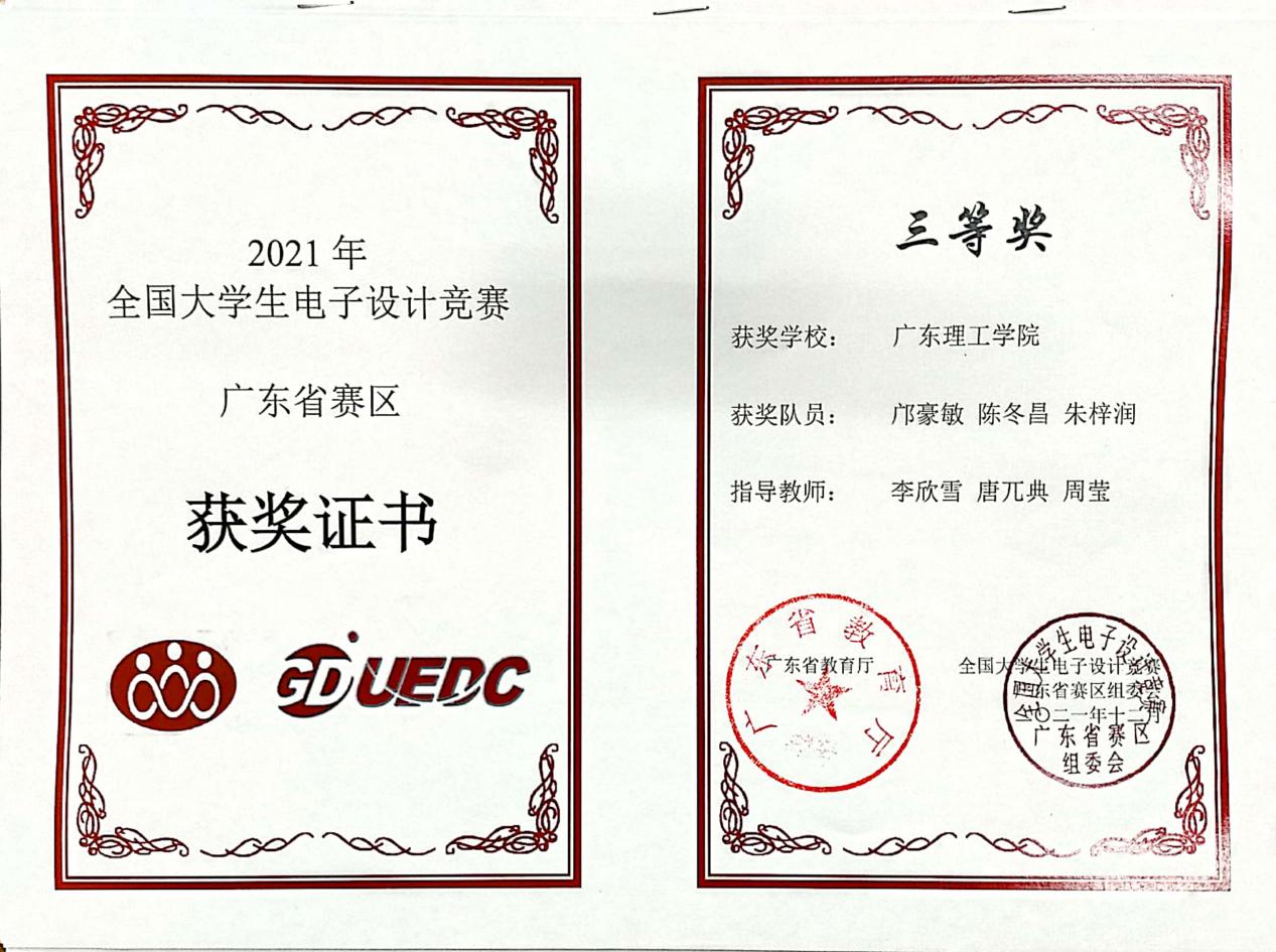 2021年全国老员工电子设计竞赛广东赛区 三等奖 |