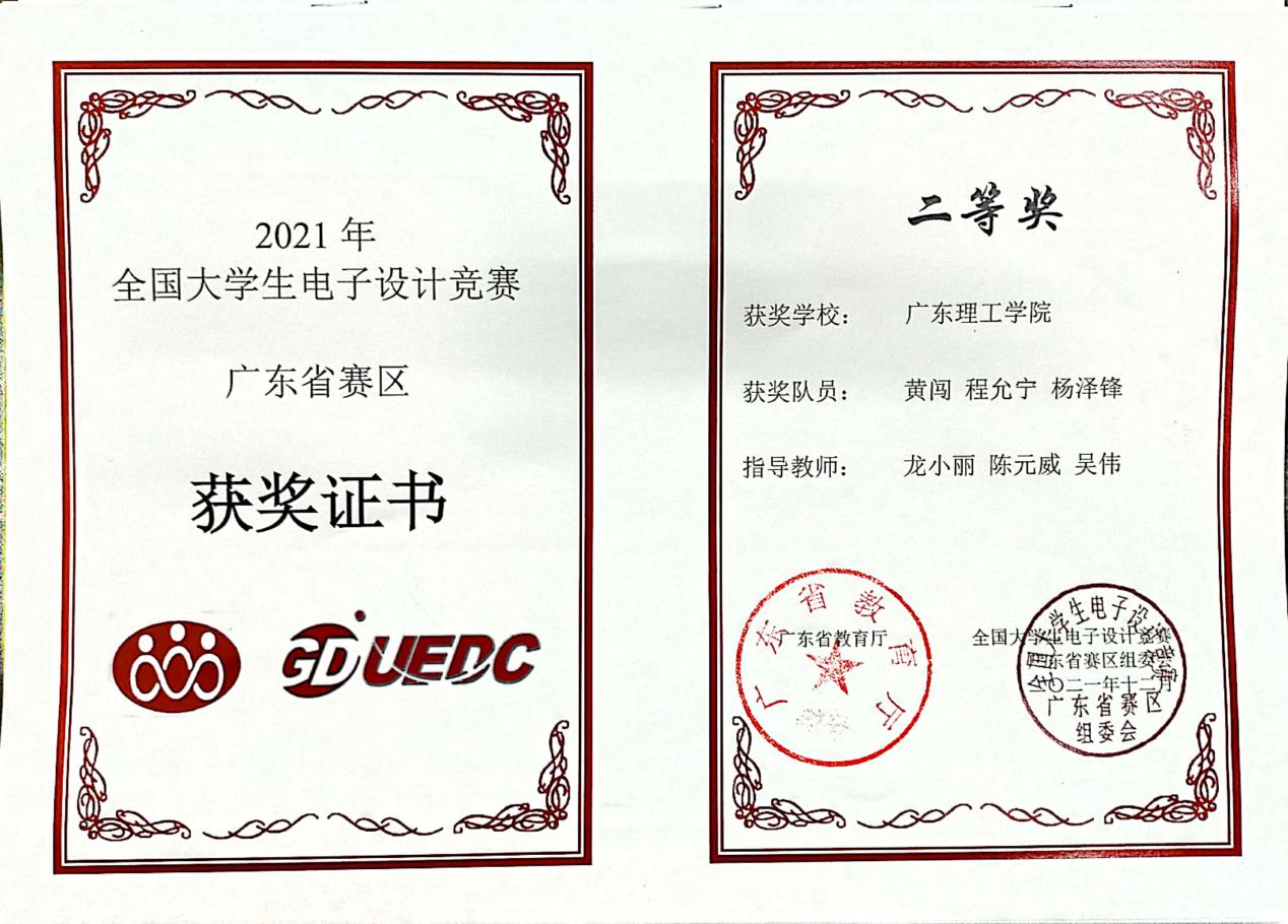2021年全国老员工电子设计竞赛广东赛区 二等奖 |