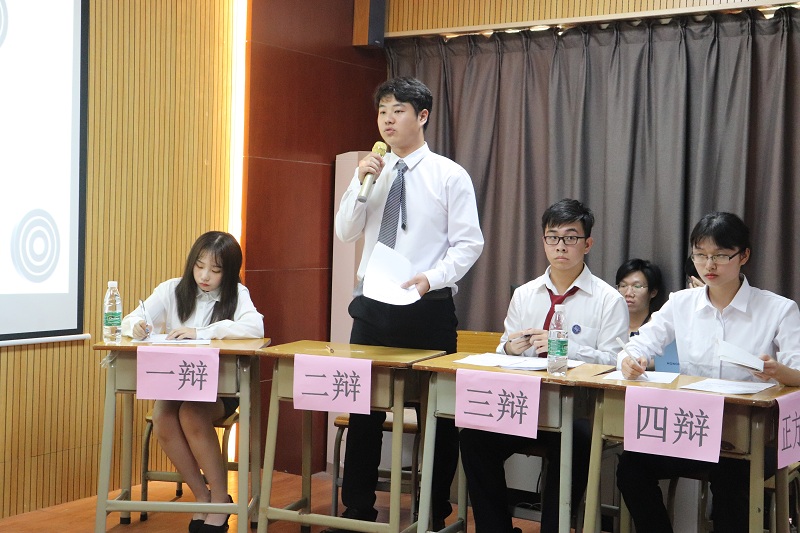 通过层层筛选,最终选出8名优秀选手进入决赛,分为两队进行辩论。随着主持人宣布辩论赛开始,全体成员起立奏唱国歌。紧接着陈文华书记上台为本次辩论赛致辞,他点出此次辩论赛是为同学们提供一个展示智慧、展示自我的舞台,比赛结果是次要的,重要的是要享受参赛过程,希望通过辩论,让同学们学会合作,有所收获。