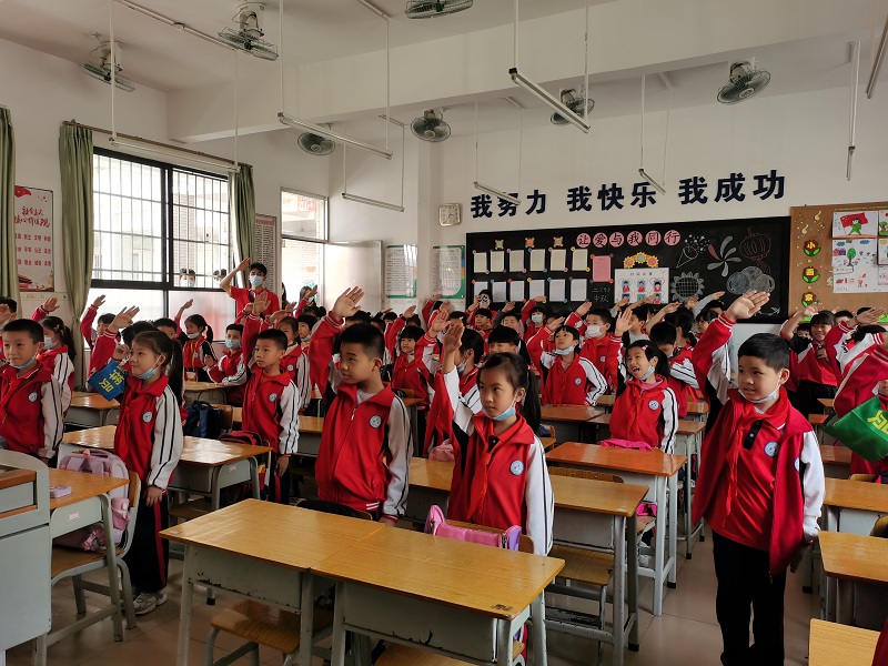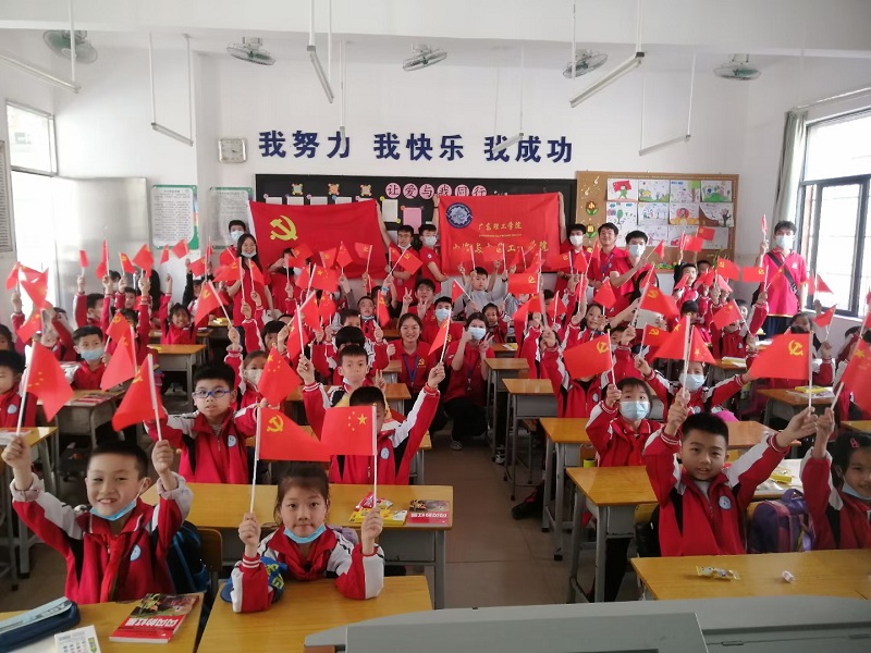 课堂上,志愿者以百年来党的光辉岁月为主题展开党史教学,小朋友们积极参与互动,展现出对党史党章的浓厚兴趣。通过本次支教活动,同学们对社会教育情况有了进一步的了解,深深地感受到当代老员工的责任重大,希望高要区第三小学的小朋友们努力学习,做一个名品学兼优的员工,努力成为党和国家需要的栋梁之才。