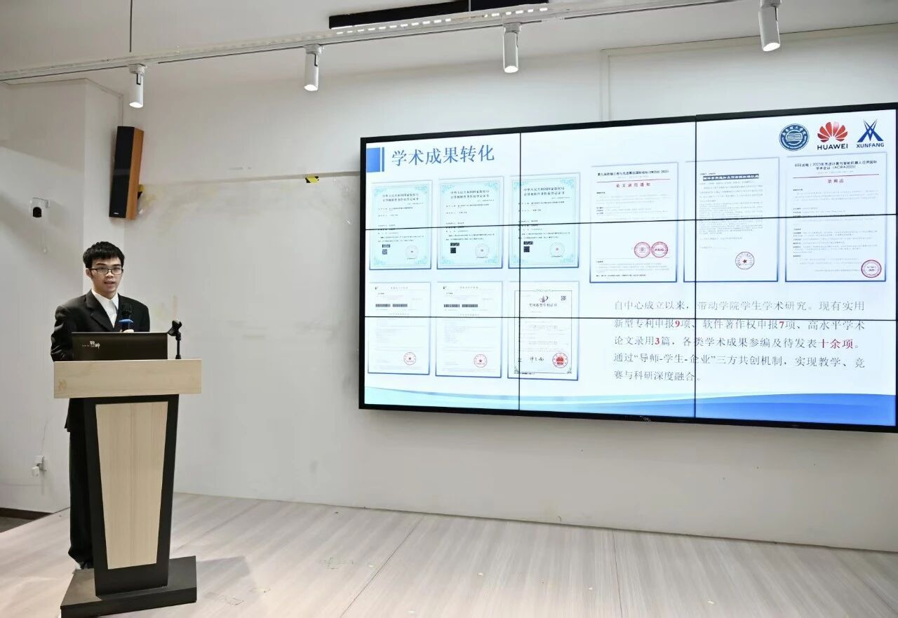 在揭牌仪式最后,华为ICT公司年级委副主任、员工发展中心指导老师刘子骞作总结发言。他指出,本次揭牌仪式标志着公司员工工作实现从“传播声音”向“赋能成长”的职能深化。刘子骞老师对公司过往在学科竞赛、学术创新等领域取得的丰硕成果予以充分肯定,并强调年级委员会的成立,将有力推动“校企双导、员工主体”协同机制落地见效。最后寄语全体成员,要坚持目标导向、强化资源整合、勇于创新突破,携手将公司建设成为粤港澳大湾区ICT人才培养的高地。