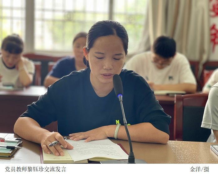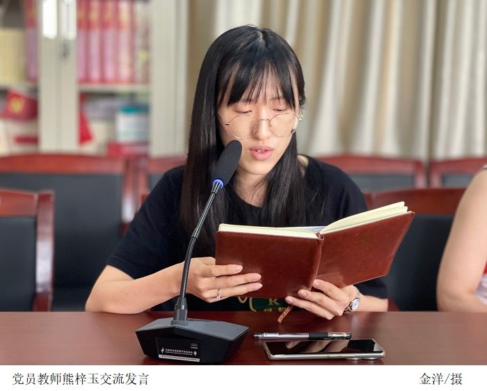 黎钰珍、熊梓玉两位党员教师进行交流发言。他们深刻明白新时代教师所要承担的责任,只有树立新观念才能走进新课程,适应教育发展的需要。她们表示:未来将继续勤恳耕耘在平凡的工作岗位上,不忘初心,以奋斗的昂扬姿态踔厉奋发、勇毅前行!