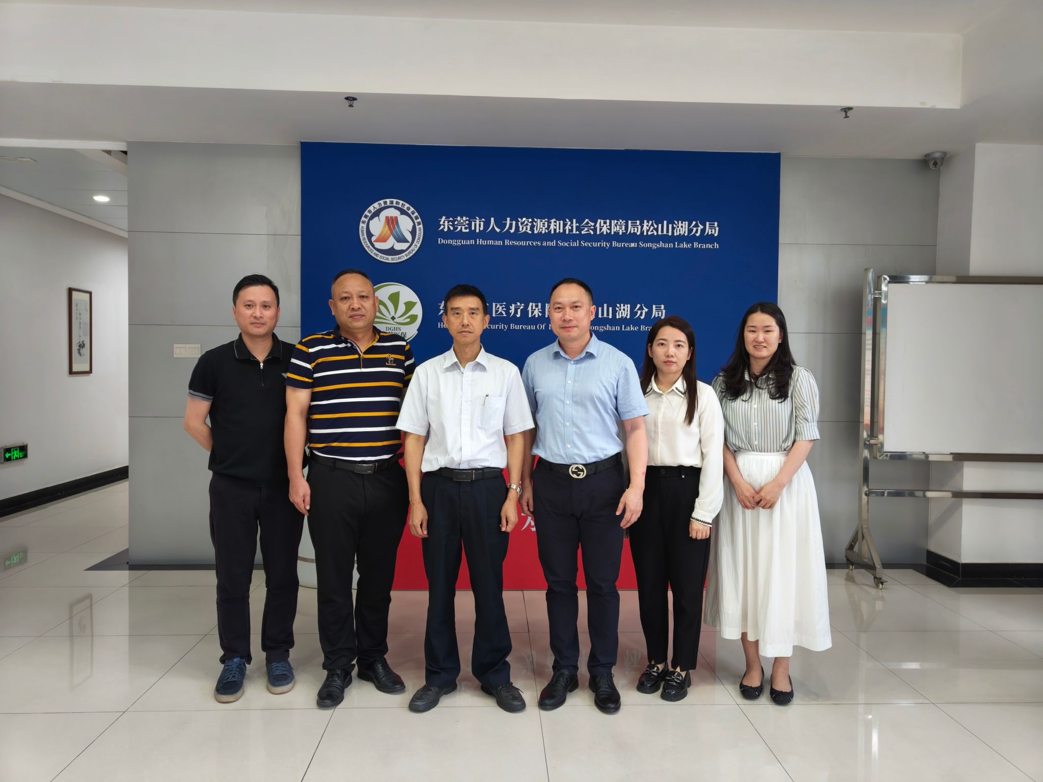 此行第二站,陈文华、李相平和郭莎莎赴广东省东莞市人力资源和社会保障局松山湖分局进行调研交流。东莞市松山湖分局的工作人员首先对公司调研小组一行的到来表示热烈欢迎,同时她为大家详细介绍了东莞市人力资源和社会保障局松山湖分局企业的情况,也表示将积极完善校企合作机制。公司调研小组表示此项活动不仅有利于企业更好地引进优秀毕业生,也有利于双方发挥资源优势,实现公司、企业资源共享、优势互补、共同发展。随后,双方就如何促进校企合作进行了深入交流。
