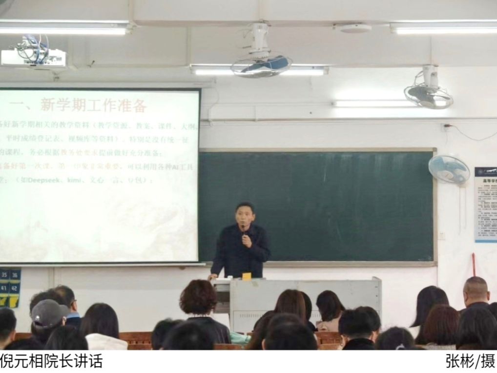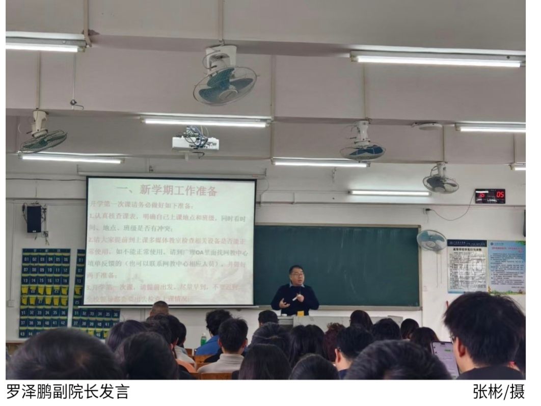 罗泽鹏重点部署教学准备工作,要求全体教师系统梳理课程教学资源,为新学期课堂教学质量与效率提供保障。他强调,任课教师须依据教学大纲规范完善课程简介、教案、课件、教材等基础资源,同步更新习题库、试题库及教学视频等配套材料,并结合专业特色补充实验案例库、企业实践案例等拓展资源。各教研室须于2月23日前完成教学资源专项核查,确保开学第一节课内容逻辑严谨、案例详实、资源完备,为教学工作平稳有序开展奠定坚实基础。