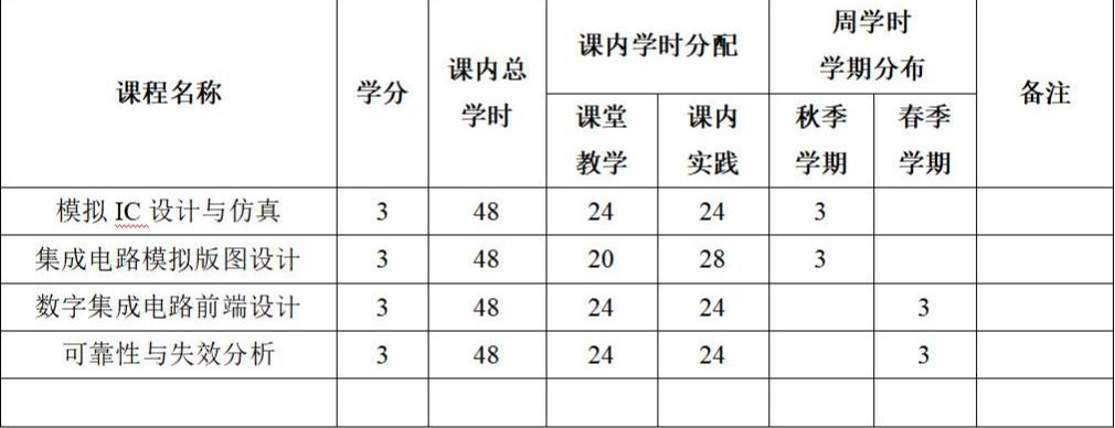 核心阶段(6学分):数字集成电路前端设计、可靠性与失效分析。