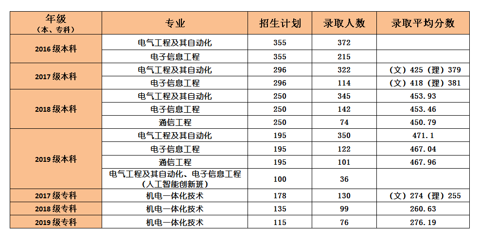 2016-2019年各专业招生人数及录取分