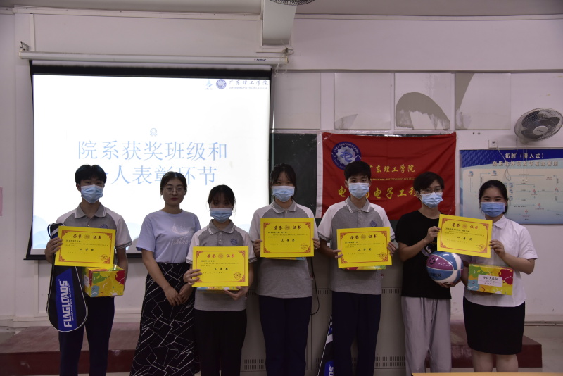紧接着的颁奖环节中,易班工作人员对活动获奖人员颁发奖状。其中,20本科科大讯飞班及20本科通信1班获得电院之光主题班会评比一等奖;20本科通信2班、20本科电气3班获得二等奖;20本科电信2班、20专科电气班及20专科电子班获得三等奖。然后是南粤故事征集活动评比结果,一等奖的获得者是李晓晴同学,黄楚卿同学获得二等奖,喻佳锐同学获得三等奖,李浩楷、丁展鹏、穆俊杰等同学获得优秀奖。然后是对易班干部和干事们进行颁奖,欧阳泳健、谢学练、贝宏韬等六位同学获得易班先进工作者人员称号;冯佛浪、袁玮丰、廖华杰等十位同学获得易班优秀工作者人员称号;欧阳泳健、梁缘欣、陈柳川十二位同学获得易班积极分子人员称号;谢怡晓、黄方慧等五位同学获得优秀易班负责人人员称号,然后易班积极团体评选结果,获得该称号的班机是20本科电气1班、20本科电气2班、20本科电气4班、 20本科电气5班、 20本科电气6班、 20本科通信1班、20本科科大讯飞班。