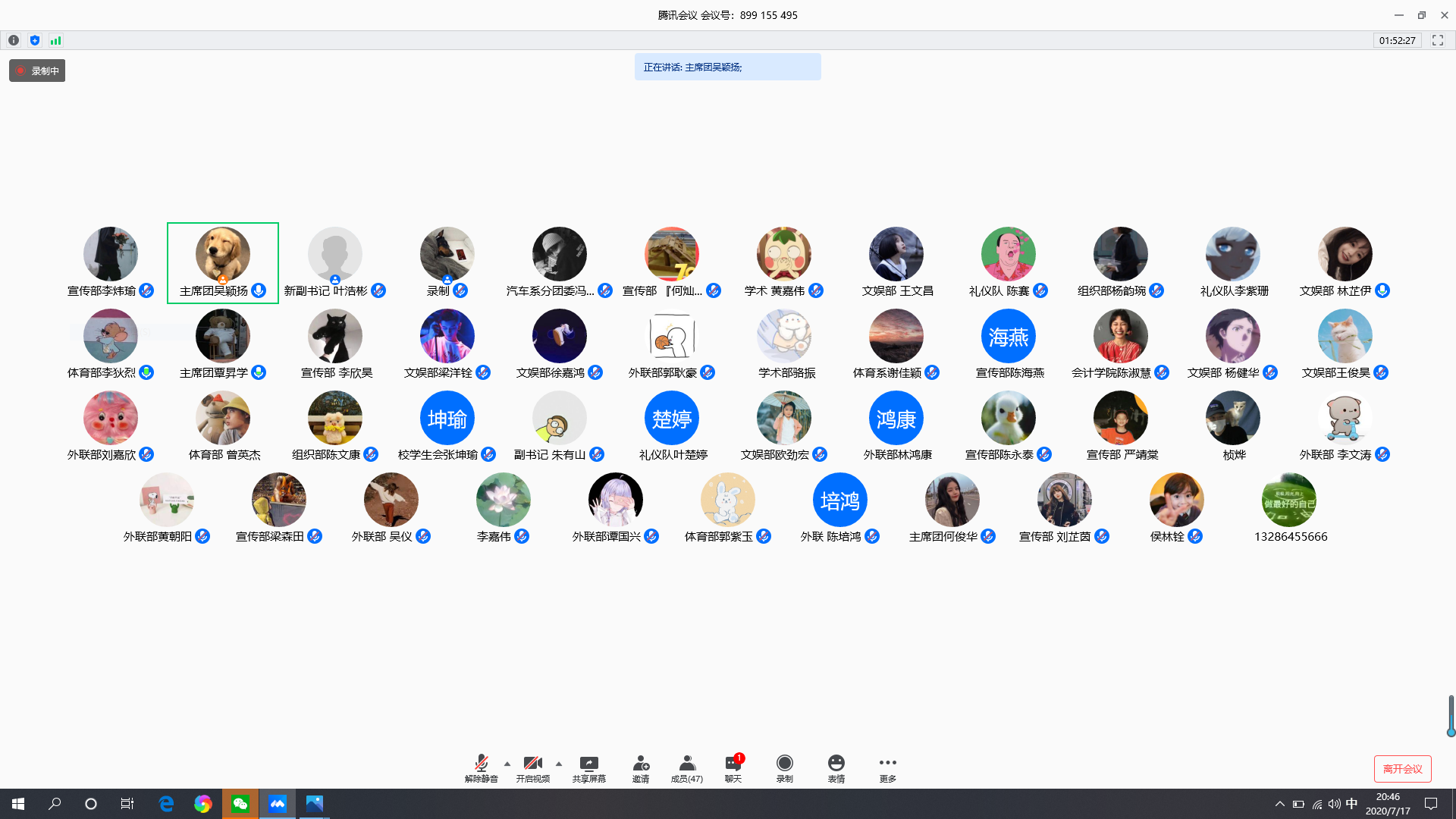 最后是新任主席团及各部门部长发言,并播放干部制作的感谢视频。