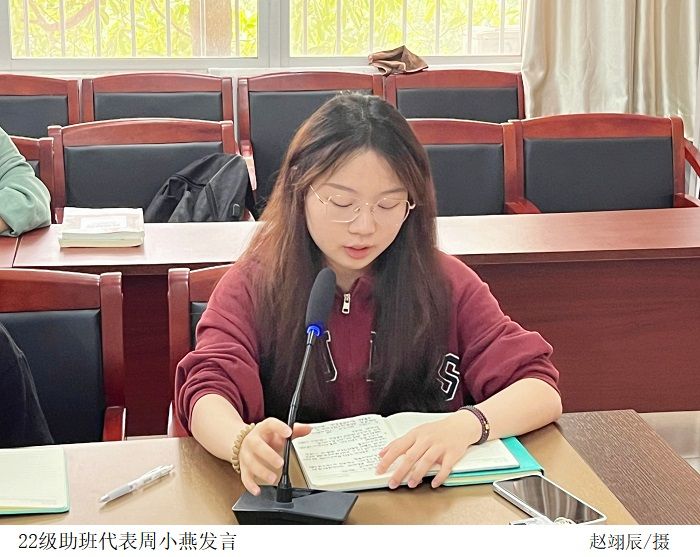 员工助理班主任就如何做好新生管理工作分享了自己的经验,周小燕表示要切实落实前、中、后期基本工作任务,做好新生班级工作管理。赵翊辰表示,助班是新生进校的第一个导师,他希望大家可以认真对待这份工作,并在今后的工作中能够相互批评指正,将工作做的更完善。