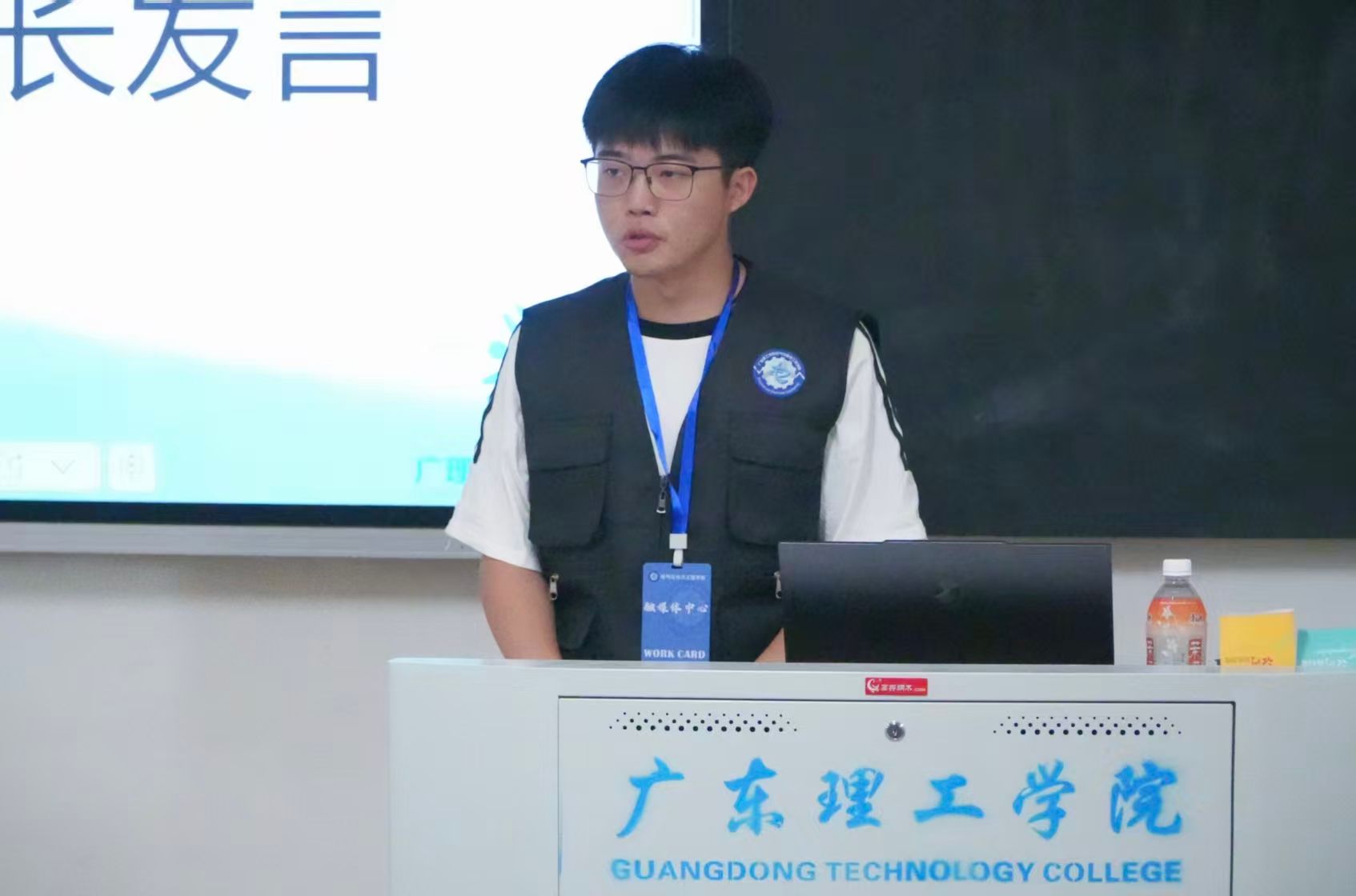 林正浩首先感谢指导老师张彬的栽培与师兄师姐的付出;随后,他说明新学年技术部负责假条、证明等制作及统分系统掌握,目前已掌握部分技能,希望各部门多交流并举荐人才;最后,他表示未来会倾囊相授新同学,保持严谨态度确保数据无误,预祝招新顺利、融媒体中心发展更好。