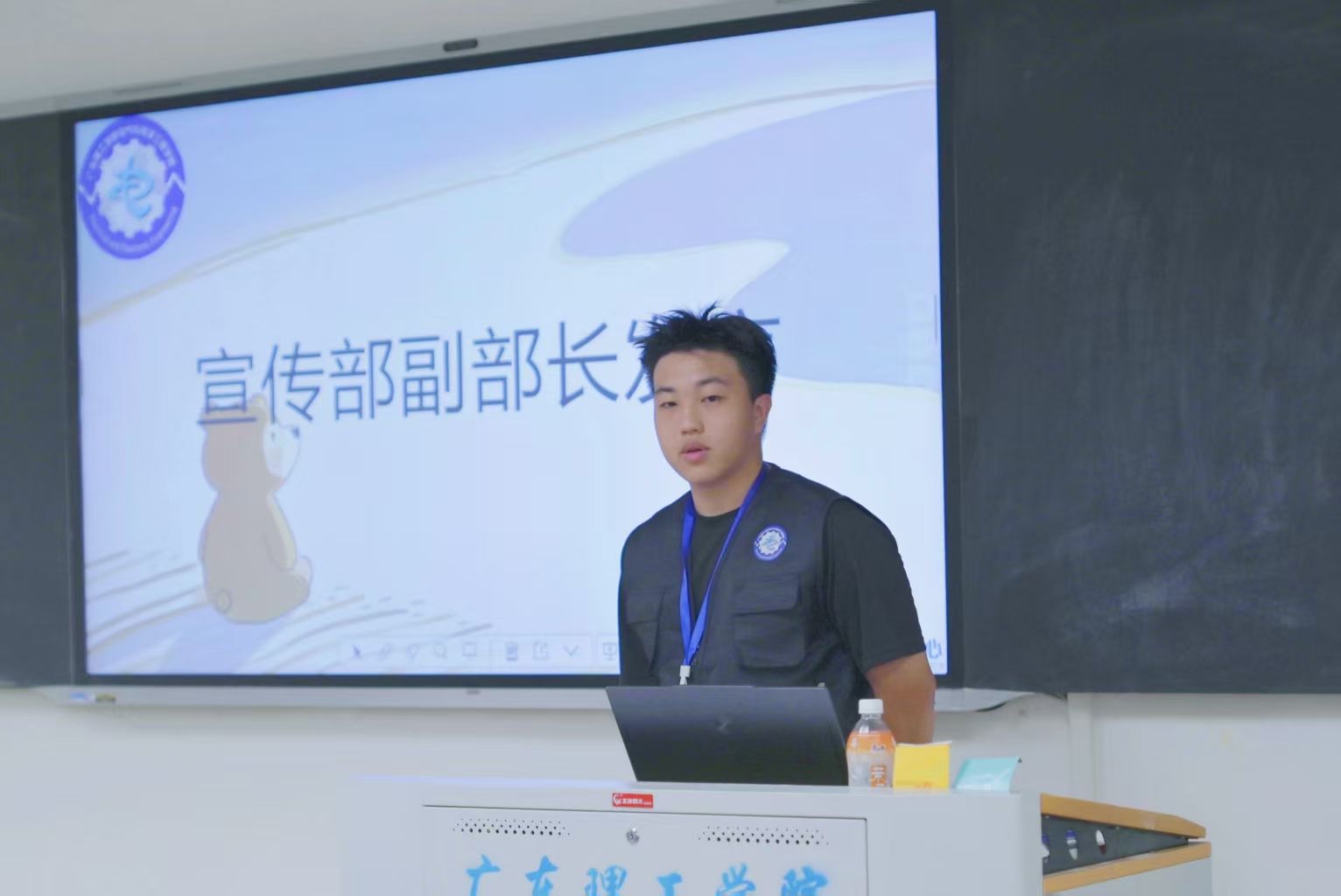 聂玮俍首先感谢张彬老师的指导与组织的栽培,同时指出换届后部门在工作协调、推文时效与内容严谨性上的不足,强调需吸取教训;然后,他回顾上学期完成200余篇推文、协办多场活动的成果,坚信新学期能克服挑战,并提及将探索公众号互动形式;最后,他明确新学期配合迎新、筹备招新、规划新成员培训的工作重心。
