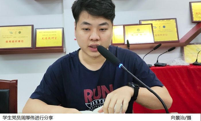 预备党员代表周厚伟以“非凡十年——感受新时代中国十年的伟大变革”为主题,讲述了新时代中国近十年的伟大成就和伟大变革,他希望大家通过中国近十年的奋斗发展史,能够更好的了解和学习党的辉煌旅程以及近十年来党的重要思想。