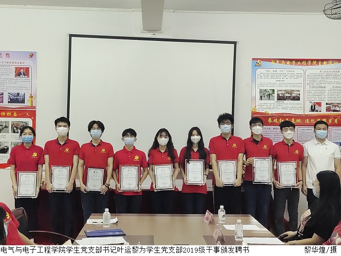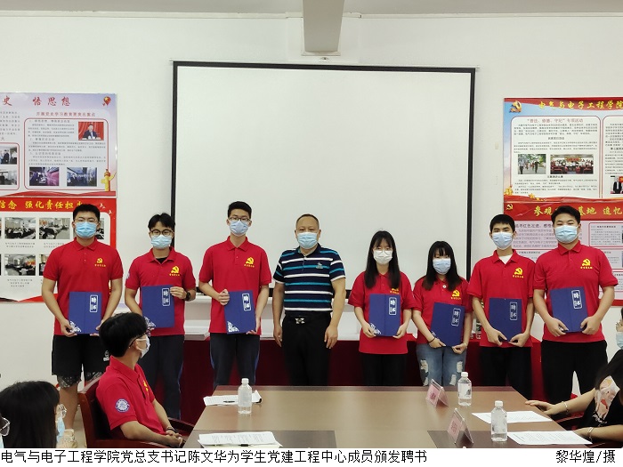 陈强代表党总支宣读了《关于成立员工党建工作中心的通知》、《bevictor伟德官网员工党建工作中心部门职责》两个文件,陈文华、陈强、叶运黎为第一届员工党建工作中心员工干部、员工党支部2019级干事颁发了聘书。周厚伟同学代表第一届员工党建工作中心员工干部进行就职表态,陈企宙同学代表员工党支部2019级干事就党建工作进行交流发言。