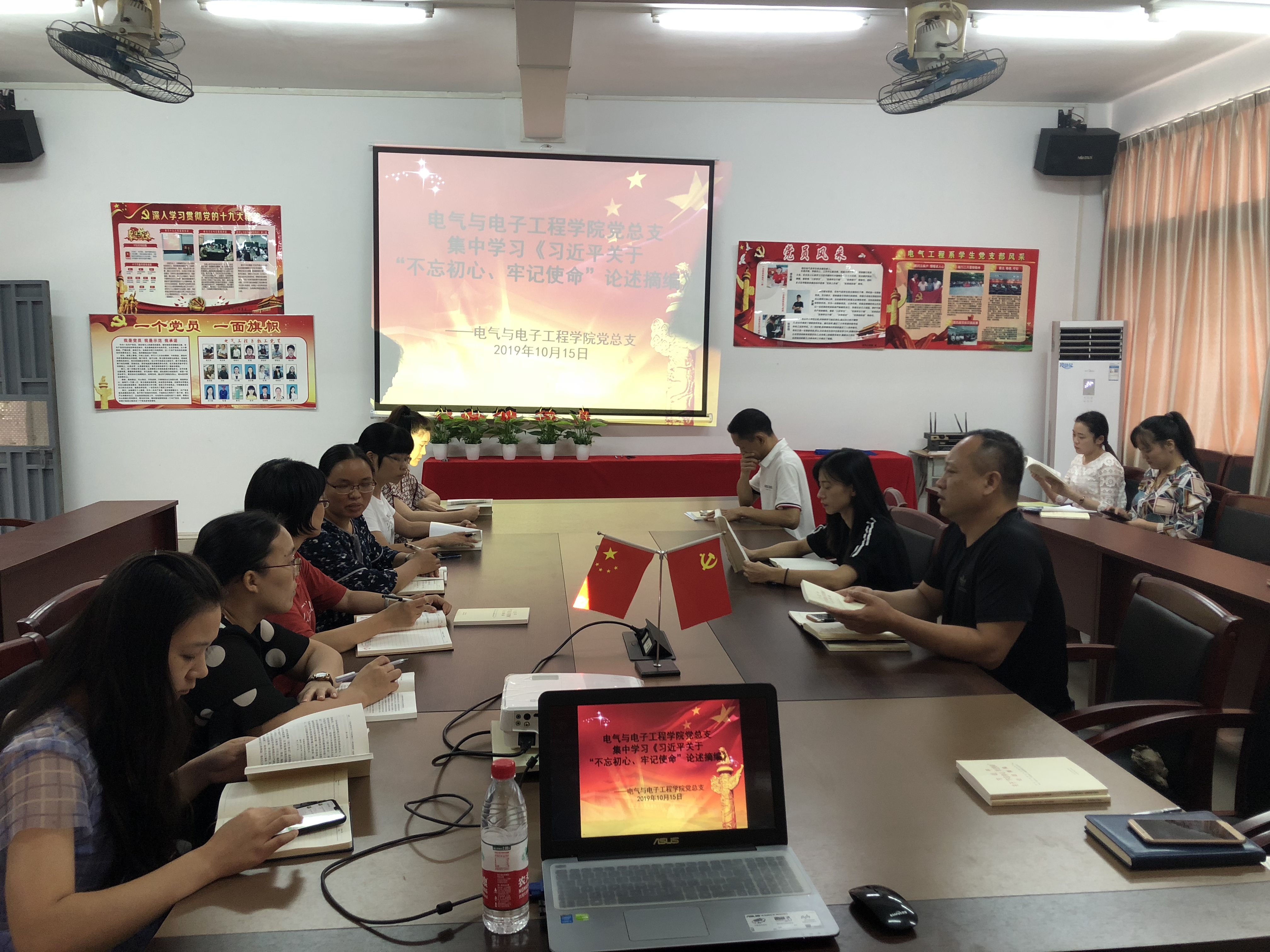 2019年10月15日下午,公司党总支陈文华书记在7栋203室开展学习会,召集公司党员集中学习《习近平关于“不忘初心、牢记使命”重要论述摘编》。