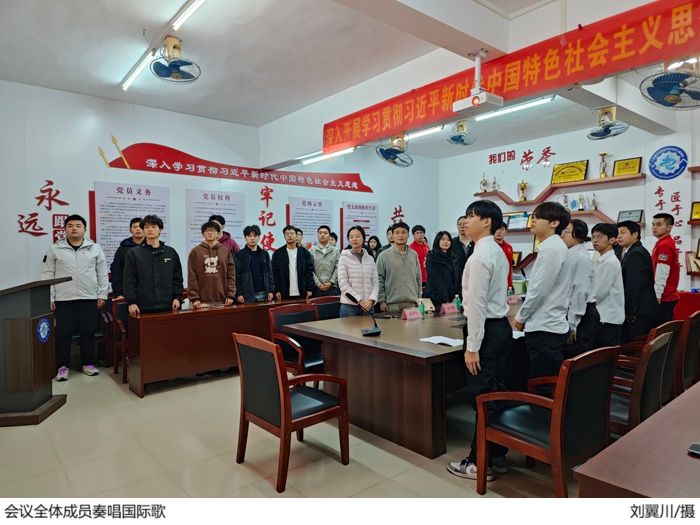 会议伊始,奏唱《国际歌》。戴军等5名预备党员分别向党组织汇报自己在预备期间的思想表现、日常学习与工作情况,并提出转正申请。