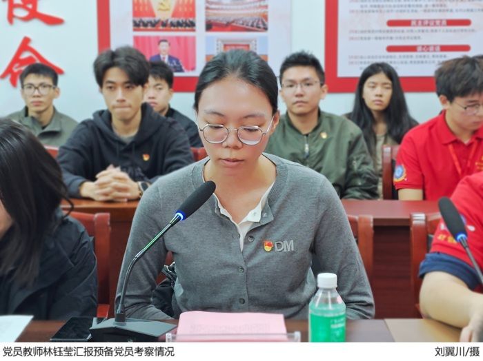 林钰莹代表党支部委员向大会汇报戴军等5名同志在预备期间教育的考核情况。经无记名投票,一致通过戴军等5名同志的转正申请,成功转为正式党员。